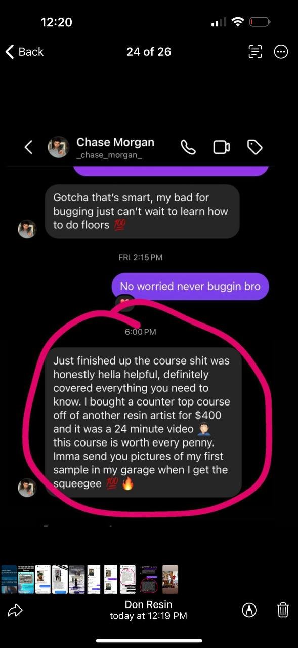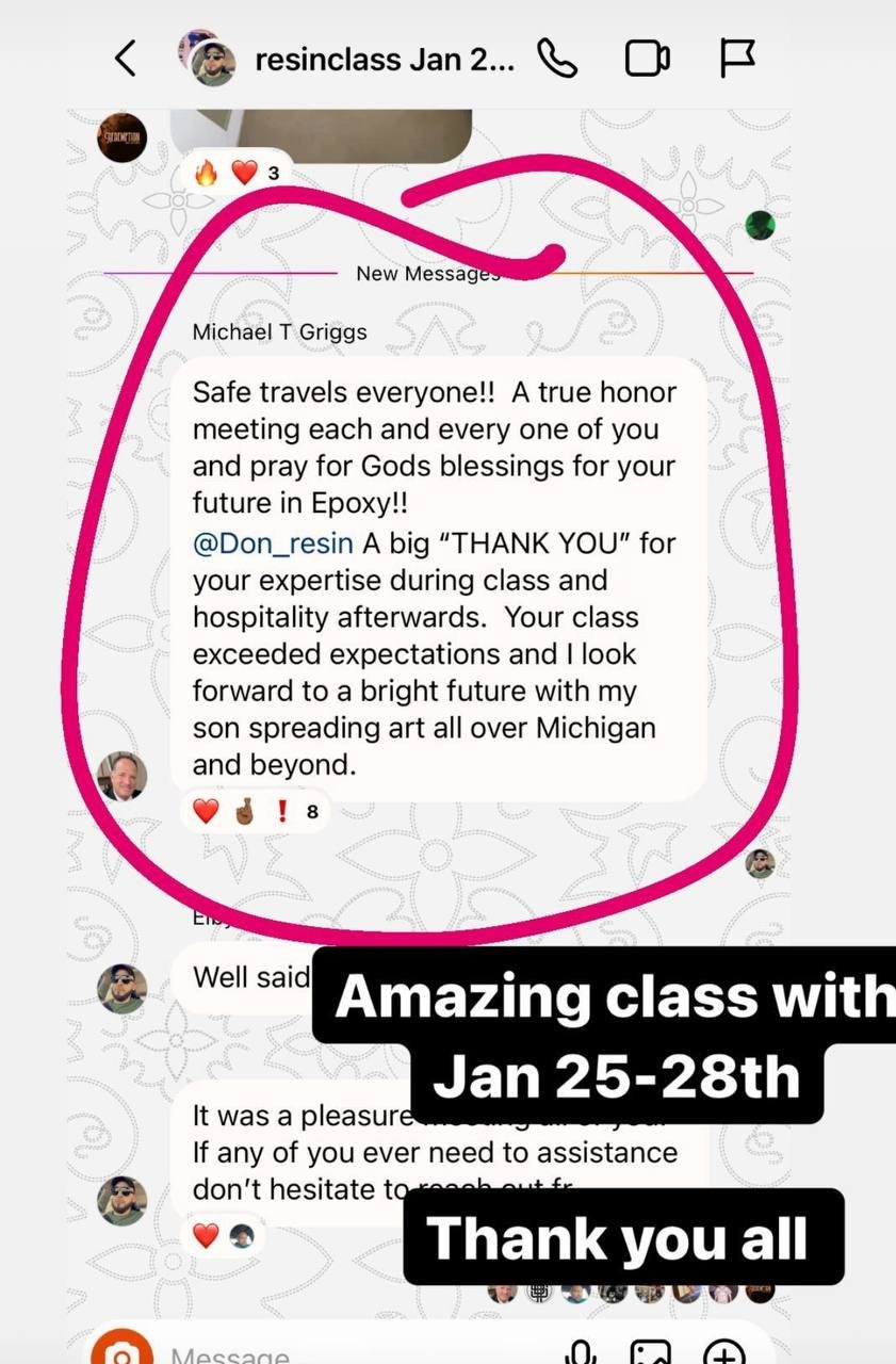 Login any time durning and after the class for a re fresh on the class Watch newly updated videos anytime don uploads one Access to communicate with Don Resin durning and after class! Collab opportunities on future jobs with Don resin Resin job leads/ sub contracting opportunities With Don resin